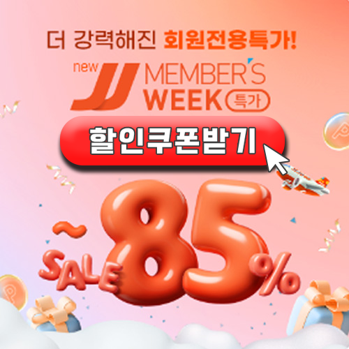 제주항공에서만 진행되는 8월 3째주 역대급 프로모션 JJ멤버스 위크 행사에 최대 85%까지 할인혜택을 누릴 수 있습니다. 12월에 저렴한 금액으로 여행경비를 확 낮추고 싶다면, 미리 3만원 할인쿠폰과 프로모션 코드까지 받으시면 되는데요. 최근 제주항공 찜특가 진행소식이 사라지고, 달마다 진행되는 멤버스 위크소식이 줄곧 올라오고 있습니다. 이에 접속량이 많아 서버에 접속이 안되는 경우도 많으니 지금 당장 쿠폰부터 미리 받아주시는 것을 서둘러주세요!
