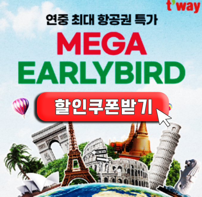 카테고리 없음 티웨이 메가 얼리버드 특가항공권 예약안내 (2024년 8월 3째주) by 2도화음 2024. 8. 18. 특가항공권 예매하기👆 선착순 7만원 쿠폰받기👆 숙박쿠폰 미리받기👆 1년에 딱 한번만 오픈되는 티웨이항공사만의 특별한 혜택 오픈이 오늘부터 시작되었습니다! 티웨이 메가 얼리버드 행사는 7일간 진행되는데요. 하지만, 초특가 항공권 예매는 딱 3일만 선착순으로 예약이 가능하니 지금 보는 즉시 예매를 해야 경비를 아낄 수 있으니 어서 예매부터 서둘러주시길 바랍니다. 여기에 추가로 5만원 할인쿠폰과 함께 숙박할인 쿠폰 15%할인쿠폰도 같이 받을 수 있으니 사라지기전 쿠폰부터 득템해가세요! 반응형 공유하기 게시글 관리 레파라 저작자표시 (새창열림)